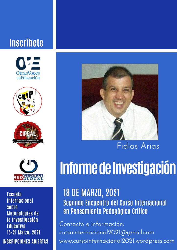 La Escuela Internacional sobre Metodologías de la Investigación Educativa se realizará por medios virtuales del 15 al 21 de marzo de 2021. Es promovida, organizada y acreditada por el Centro Internacional de Investigaciones Otras Voces en educación (CII-OVE) y la Cooperativa de Educador@s e Investigador@s Populares Histórica (CEIP-H).