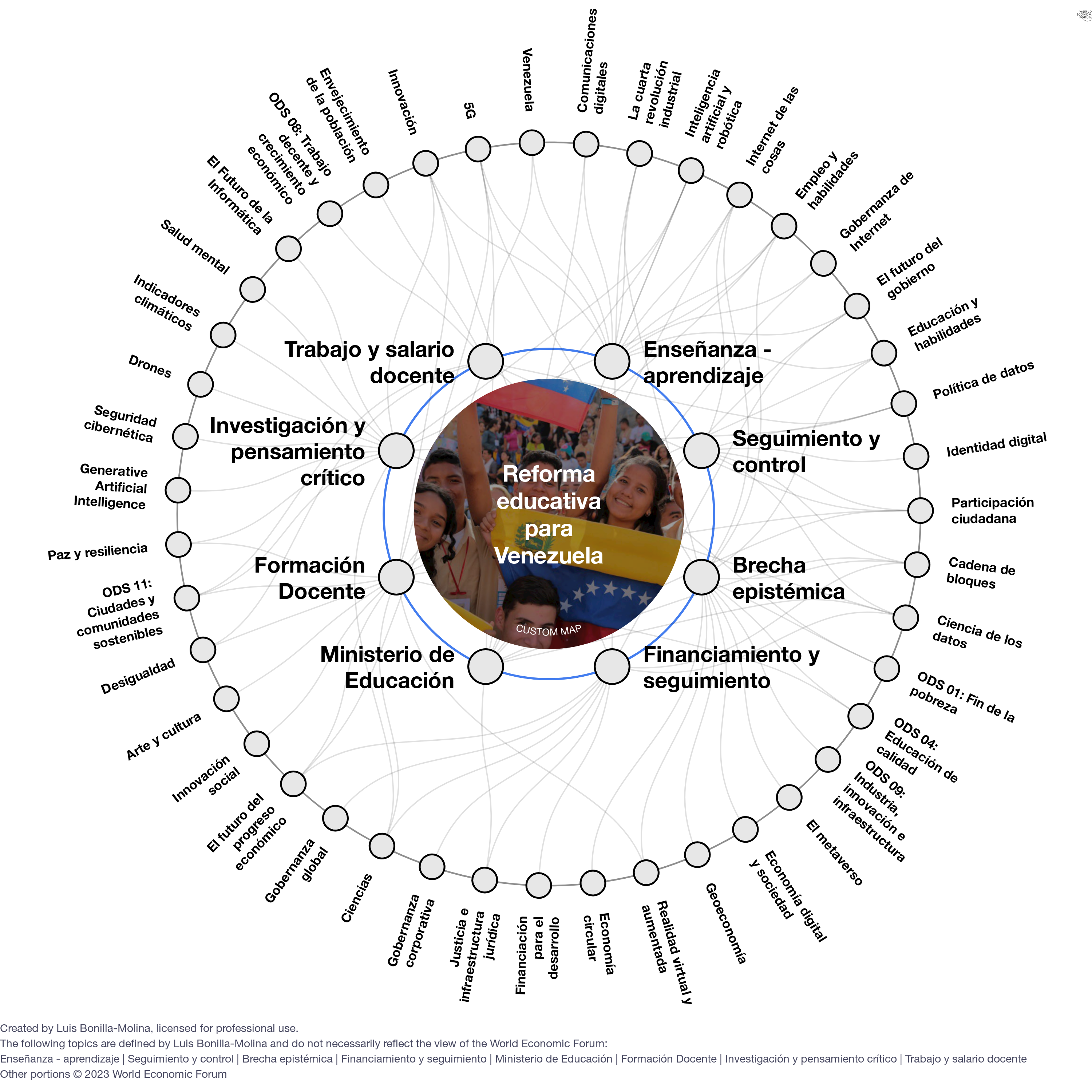 Julio 2023 En el marco de la investigación que adelanto sobre la transformación del sistema educativo venezolano, accedí a una beca del Foro Económico Mundial, consistente en permitirme usar sin costo el software Strategic Intelligency (de Inteligencia Estratégica). Este software trabaja con vínculos y enlaces a otros mapas de múltiples actividades, que ya están elaborados … Continuar leyendo Mapa Interactivo: Reforma Educativa para Venezuela