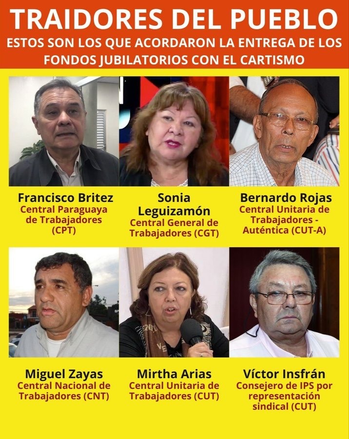Un país con menos de ocho millones de habitantes ha visto despertar a su clase trabajadora clasista y dejado caer la careta del sindicalismo burocrático, pues las cinco centrales sindicales han suscrito el pacto con el gobierno contra la clase trabajadora. Tanto la histórica CUT, como su deriva la CUT-A, como la CNT, CGT, CPT firmaron un acuerdo para vender la seguridad social de la clase trabajadora paraguaya