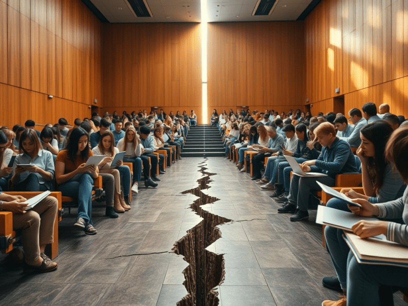 Cette transformation dilue les perceptions institutionnelles et culturelles, un processus qui se manifeste le plus clairement parmi les jeunes générations. L’adaptation du monde universitaire au système, en parfaite adéquation avec la culture évaluative néolibérale (bibliométrie, accréditation, classements, programmes de mobilité universitaire néolibéraux et protocoles de reconnaissance des diplômes), fait perdre au monde universitaire tout attraitpour les jeunes, le transformant en un espace exclusivement dédié à la formation. Cette soumission du monde universitaire à l’utopierompt paradoxalement les liens affectifs avec les nouvelles générations – une rébellion encapsulée – et vide la présence en personne de sa dimension nécessaire à la concrétisation des rêves intergénérationnels de changement. Si l’université n’est qu’une formation, d’autres alternatives, comme le virtuel, peuvent être recherchées , estiment de nombreux jeunes. Autrement dit, l’université, fruit de l’impact de la culture numérique dans le cadre de l’accélération de l’innovation, est assiégée de manière liquidatrice par le corporatisme technologique et par des secteurs de la population qui la considéraient autrefois comme unique. Aussi incroyable que cela puisse paraître, la logique du marché et du profit pousse les universités vers la virtualité, avec toutes les conséquences que cela comporte.